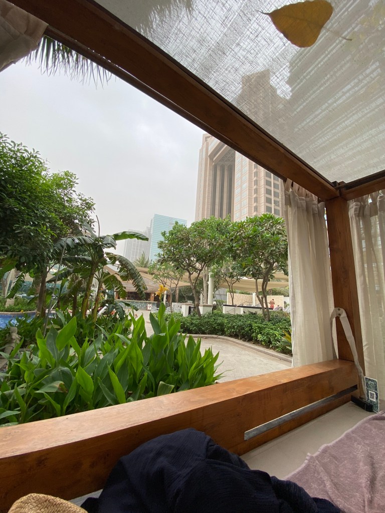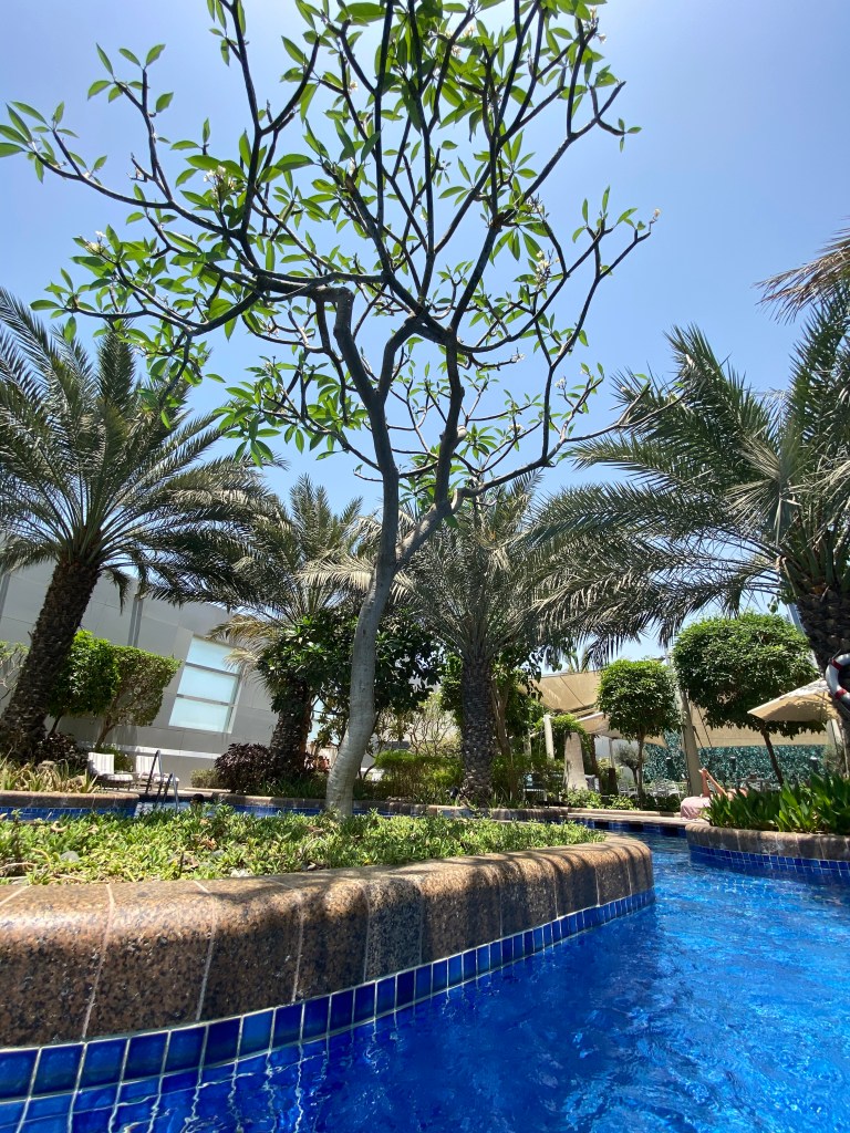 Nous partions en avril donc les températures à Dubaï commencent à monter à cette époque de l’année et la piscine était très importante. Le but de ces vacances étaient de se reposer et de découvrir donc la partie « matinée à la piscine » comptait énormément. Une majorité des hôtels à Dubai ont des piscines, elles peuvent être petites ou grandes, pour les enfants ou non, une ou plusieurs, droites (pour faire des longueurs) ou courbes (pour se prélasser).
