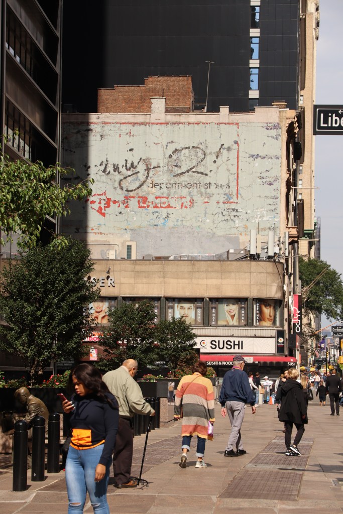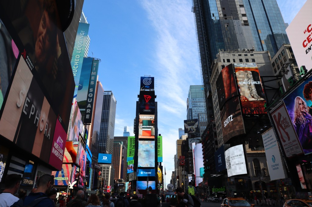 Times Square est un immanquable mais il est tellement vendu qu’on finit souvent par en être déçu. Nous y sommes allées le matin et c’était la meilleure idée, il n’y avait pratiquement personne, peu de touristes, peu de gens déguisés qui t’oppressent pour faire une photo. On a eu le temps de regarder, de prendre des photos et un gentil policier nous a même prises en photo!