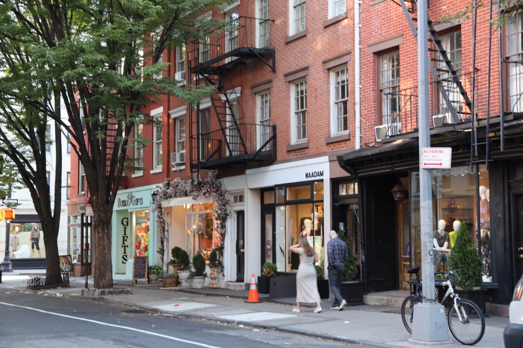À la fin de la High Line, vous vous retrouvé dans le Village (Greenwich Village), un quartier très différent de Wall Street ou de Times Square, à taille humaine, avec une architecture adorable et dans lequel vous allez reconnaitre pas mal de scènes de films. Nous sommes d’ailleurs passées devant l’immeuble de Carrie Bradshaw (Sex and the City) qui était malheureusement affublé d’un énorme drapeau Ukrainien et une chaine avec un écriteau nous disant en gros de dégager (66 Perry St). Ensuite, on a marché jusqu’au Washington Square et on s’est baladées dans ce quartier estudiantin (la NYU y est très présente).